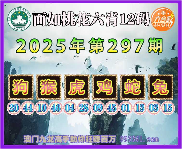 297期:【面如桃花】 👉六肖12码👉【狗猴虎鸡蛇兔】开:狗44准