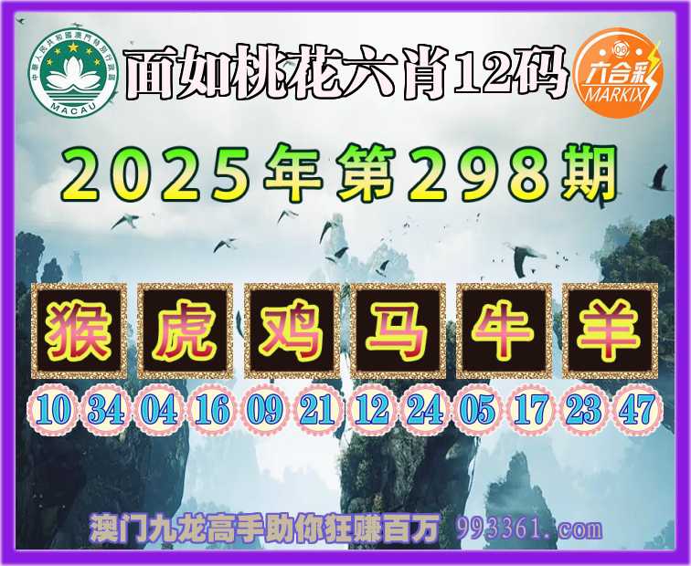 298期:【面如桃花】 👉六肖12码👉【猴虎鸡马牛羊】开:羊23准